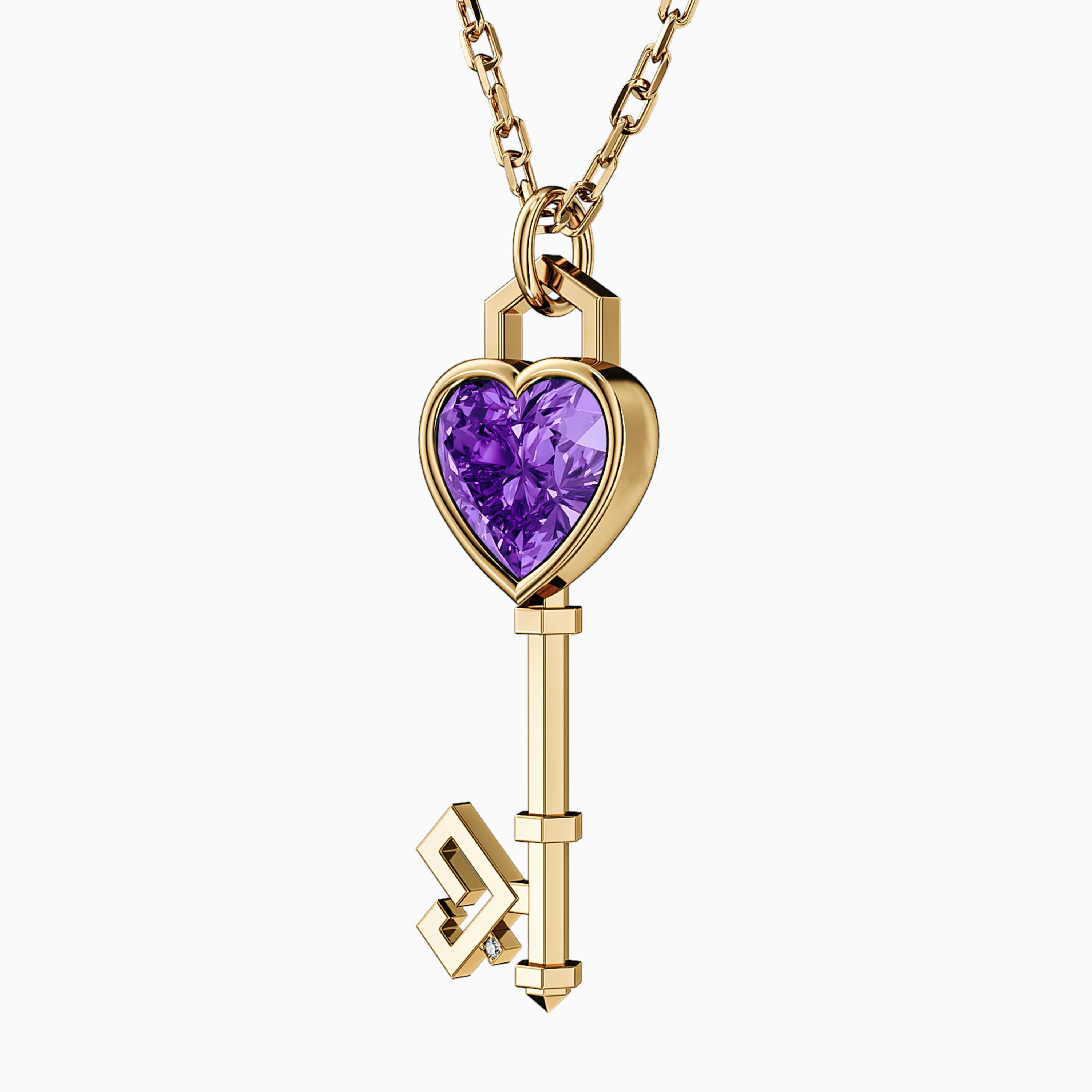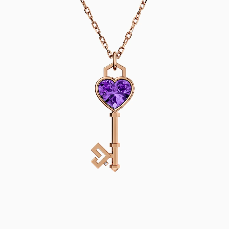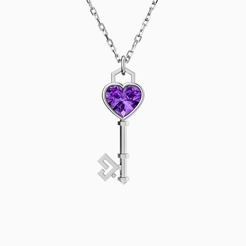 Key of Love Amethyst Solitaire Necklace